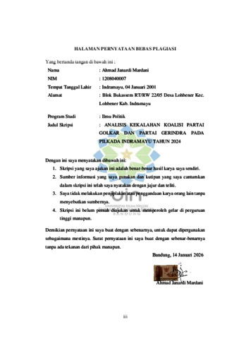 Mardani, Ahmad Janardi (2026) Analisis kekalahan koalisi partai Golkar dan partai Gerindra pada Pilkada Indramayu tahun 2024. Sarjana thesis, UIN Sunan Gunung Djati Bandung.
