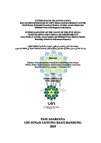 Amrullah, Fiqih (2025) Internalisasi nilai panca jiwa dalam mengembangkan soft skills kemandirian santri: Studi kasus di Pondok Pesantren Modern Al-Islah, Al-Mu’minien dan Miftahul Ulum di Kabupaten Indramayu. Doktoral thesis, UIN Sunan Gunung Djati Bandung.