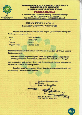 Najmudin, Udin (2026) Dinamika putusan pengadilan agama dalam wilayah pengadilan tinggi agama Bandung dalam perkara perceraian akibat kekerasan dalam rumah tangga. Doktoral thesis, UIN Sunan Gunung Djati Bandung.