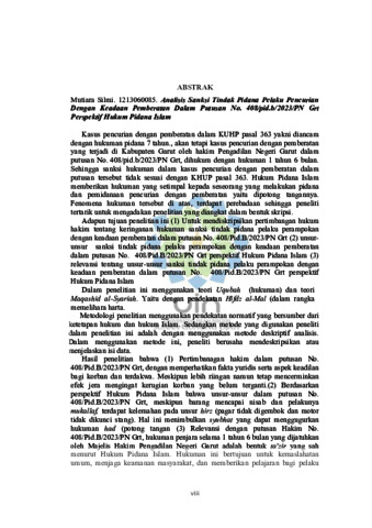Silmi, Mutiara (2025) Analisis sanksi tindak pidana pelaku pencurian dengan keadaan pemberatan dalam putusan no. 408/PID.B/2023/PN GRT perspektif hukum pidana Islam. Sarjana thesis, UIN Sunan Gunung Djati Bandung.