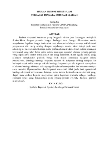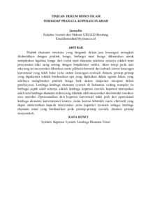 Tinjauan Hukum Bisnis Islam terhadap pranata Koperasi Syariah