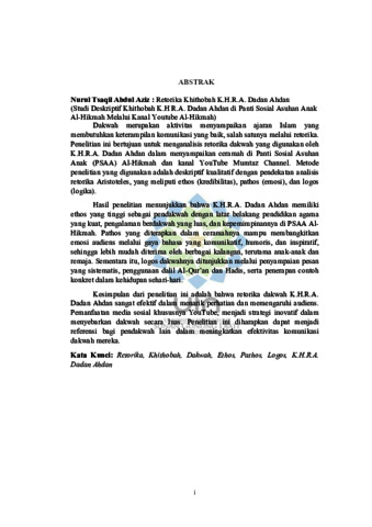 Aziz, Nurul Tsaqil Abdul (2025) Retorika Khitobah K.H.R.A. Dadan Ahdan : Studi deskriptif dakwah K.H.R.A. Dadan Ahdan di panti sosial asuhan anak Al-Hikmah melalui kanal youtube Al-Hikmah. Sarjana thesis, UIN Sunan Gunung Djati Bandung.
