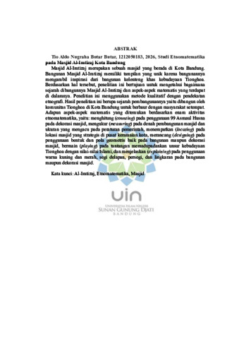 Butar Butar, Tio Aldo Nugraha (2026) Studi etnomatematika pada masjid Al-Imtizaj kota Bandung. Sarjana thesis, UIN Sunan Gunung Djati Bandung.