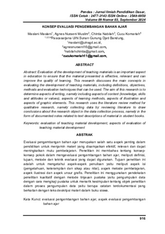Maslani, Maslani and Muslim, Agnes Nuraeni and Nabilah, Chintia and Komariah, Cucu Konsep evaluasi pengembangan bahan ajar. Jurnal Ilmiah Pendidikan Dasar, 9 (3). ISSN 2548-6950