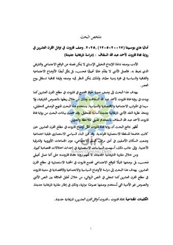 ملخص البحث أماليا هاني بوسبيتا (١٢٠٥٠٢٠٠١٧) ,٢٠٢٥. وصف قاروت في اوائل القرن العشرين في رواية فتاة قاروت لأحمد عبد الله السقاف : (دراسة تاريخانية جديدة) الأدب بوصفه نتاجًا للإبداع التخيلي الإنساني لا يمكن فصله عن الواقع الاجتماعي والتاريخي الذي يحيط به. فالعمل الأدبي لا يقدّم عالمًا تخييليًا فحسب، بل يمثّل أيضًا الأوضاع الاجتماعية والثقافية والسياسية في فترة زمنية معيّنة، ولذلك يمكن النظر إليه بوصفه وثيقة ثقافية تسجّل روح العصر. يهدف هذا البحث إلى وصف صورة حياة المجتمع في قاروت في مطلع القرن العشرين كما وردت في رواية فتاة قاروت لأحمد عبد الله السقاف، وذلك من خلال ربطها بالنصوص التاريخية، ولا سيما في الجوانب الاجتماعية والاقتصادية والسياسية. يستخدم هذا البحث المنهج الوصفي التحليلي، ويتخذ نظرية النقد الأدبي تاريخانية جديدة أساسًا للتحليل. وقد جمعت بيانات البحث من رواية فتاة قاروت لأحمد عبد الله السقاف باستخدام تقنيتي الملاحظة والتدوين. تُظهر نتائج البحث أن رواية فتاة قاروت تمثّل أوضاع قاروت في مطلع القرن العشرين حين كانت خاضعة للسلطة الاستعمارية الهولندية. وقد أفرز البناء السياسي الاستعماري طبقية اجتماعية وضعت السكان الأصليين في أدنى مراتب السلم الاجتماعي، دون الجماعات الأوروبية والشرقية الأجنبية. وإلى جانب ذلك، أسهمت السياسات الاستعمارية في إحداث اختلالات اقتصادية كبيرة. ومن خلال مقاربة التاريخانية الجديدة، لا تُفهم رواية «فتاة قاروت» على أنها عمل تخييلي فحسب، بل بوصفها تمثيلًا للواقع الاجتماعي لمجتمع قاروت في الحقبة الاستعمارية في مطلع القرن العشرين. يهدف هذا البحث إلى دراسة الأوضاع السياسية والاجتماعية والاقتصادية في مدينة قاروت في مطلع القرن العشرين كما تتجلى في النص الروائي، من خلال تحليل العلاقة بين النص الأدبي والنصوص غير الأدبية التي تُستخدم بوصفها نصوصًا موازية، وذلك في إطار مقاربة تاريخانية جديدة.