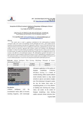 Nugraha, Adhia and Rohanda, Rohanda and Kodir, Abdul and Komarudin, R. Edi (2025) Integration of AI Deep Learning in Studying the Morphology of Philosophy of Science Perspectives. JSA Jurnal Studi Agama, 9 (1). ISSN 26559439
