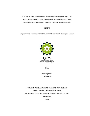 Apriani, Fera (2025) Ketentuan nafkah bagi istri menurut Imam Khatib al-Syirbini dan Syekh Zainuddin al-Malibari serta relevansinya dengan hukum positif di Indonesia. Sarjana thesis, UIN Sunan Gunung Djati Bandung.