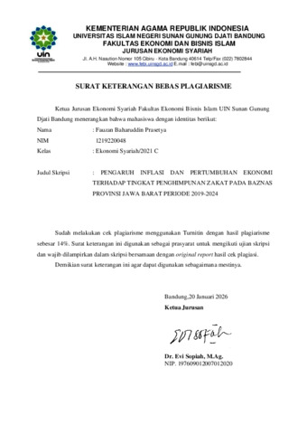 Uncontrolled Keywords: inflasi; pertumbuhan ekonomi; penghimpunan zakat