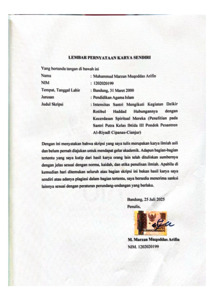 | Uncontrolled Keywords: | Intensitas Santri; Rotibul Haddad; Kecerdasan Spiritual |