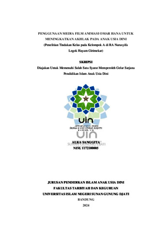 Sanggita, Alka (2024) Penggunaan media film animasi Omar Hana untuk meningkatkan akhlak pada anak usia dini: Penelitian tindakan kelas pada kelompok A di RA Nurusyifa Legok Hayam Girimekar. Sarjana thesis, UIN Sunan Gunung Djati Bandung.