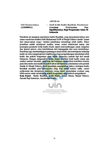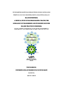Martawardaya, Febi (2025) Studi kritik Hadits Raudhah : Penelusuran Genealogi periwayatan dan signifikansinya bagi pengamalan Islam di Indonesia. Masters thesis, UIN Sunan Gunung Djati Bandung.