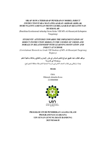 Sikap siswa terhadap penerapan model direct instruction pada mata pelajaran akidah akhlak hubungannya dengan motivasi belajar dan kesantunan di sekolah: Penelitian korelasional terhadap siswa kelas VIII MTs Al-Hasaniyah Kabupaten Tangerang