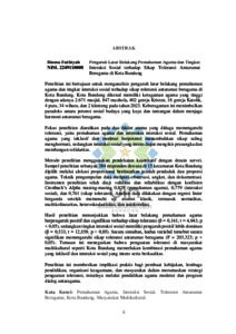 Pengaruh latar belakang pemahaman agama dan tingkat interaksi sosial terhadap sikap toleransi antarumat beragama di Kota Bandung