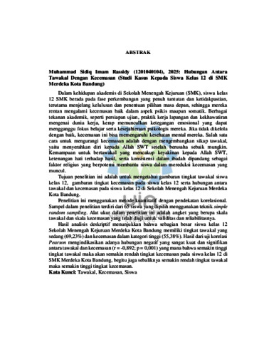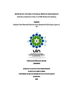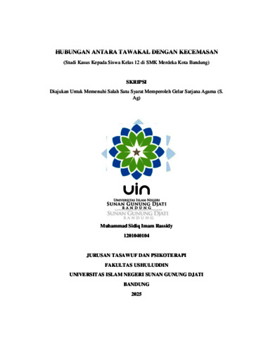 Rassidy, Muhammad Sidiq Imam (2026) Hubungan antara tawakal dengan kecemasan: Studi kasus kepada siswa kelas 12 di SMK Merdeka Kota Bandung. Sarjana thesis, UIN Sunan Gunung Djati.