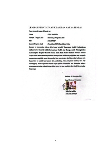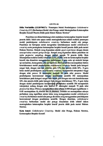 Nurfadilla, Dilla (2026) Penerapan model pembelajaran Collaborative Creativity (CC) berbantuan model alat peraga untuk meningkatkan keterampilan berpikir kreatif peserta didik pada materi Hukum Newton. Sarjana thesis, UIN Sunan Gunung Djati Bandung.