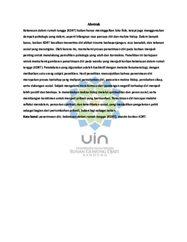Clarista, Cerin (2025) Penerimaan diri pada perempuan korban KDRT di kota Garut. Sarjana thesis, UIN Sunan Gunung Djati Bandung.