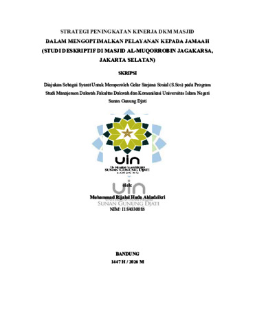 Ahladzikri, Muhammad Rijalul Huda (2026) Strategi peningkatan kinerja DKM masjid dalam mengoptimalkan pelayanan kepada jamaah. Sarjana thesis, UIN Sunan Gunung Djati Bandung.