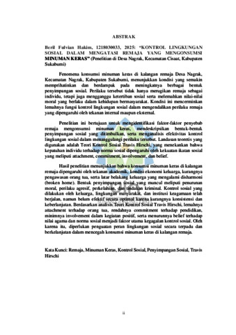 Hakim, Beril Fulvian (2026) Kontrol lingkungan sosial dalam mengatasi remaja yang mengonsumsi minuman keras: Penelitian di Desa Nagrak, Kecamatan Cisaat, Kabupaten Sukabumi. Sarjana thesis, UIN Sunan Gunung Djati Bandung.