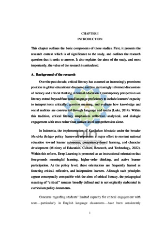 Uncontrolled Keywords: Critical literacy; Critical pedagogy; EFL curriculum; Kurikulum Merdeka; Multiliteracies.