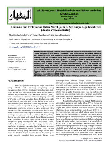 Syah, Abdulloh Jalaluddin and Rahtikawati, Yayan and Suprianto, Ade Ahmad (2025) Dominasi dan Perlawanan Dalam Novel Qolbu Al-Lail Karya Naguib Mahfouz : Analisis Wacana Kritis. Al Mi'yar: Jurnal Ilmiah Pembelajaran Bahasa Arab dan Kebahasaaraban, 8 (1). pp. 293-309. ISSN 2620-6536