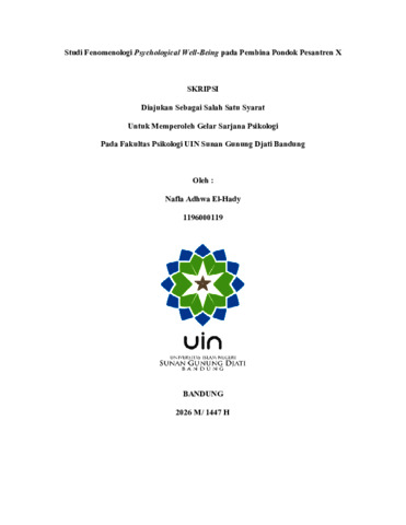 El-Hady, Nafla Adhwa (2026) Studi Fenomenologi Psychological Well-Being pada Pembina Pondok Pesantren X. Sarjana thesis, UIN Sunan Gunung Djati Bandung.