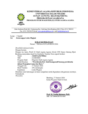 Hilmy, Abdul latief (2026) Providentia Dei: Studi komparatif konsep providentia dalam perjanjian lama dan baru. Masters thesis, UIN Sunan Gunung Djati Bandung.