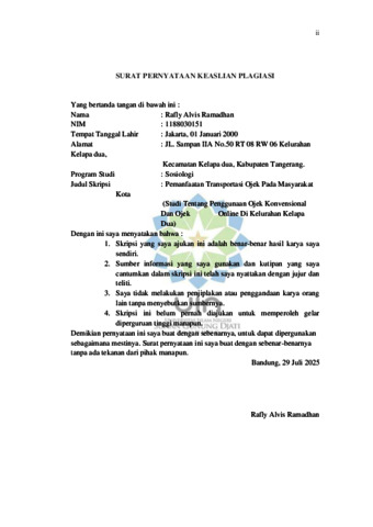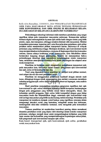 Ramadhan, Rafly Alvis (2025) Pemanfaatan transportasi ojek pada masyarakat: Studi tentang penggunaan ojek konvensional dan ojek online di kelurahan kelapa dua Kecamatan Kelapadua Kabupaten Tangerang. Sarjana thesis, UIN Sunan Gunung Djati Bandung.