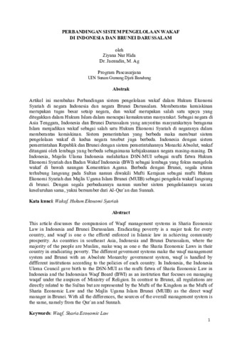 Hida, Ziyana Nur and Jaenudin, Jaenudin Perbandingan sistem pengelolaan Wakaf di Indonesia dan Brunei Darussalam. UIN Sunan Gunung Djati Bandung. (Unpublished)