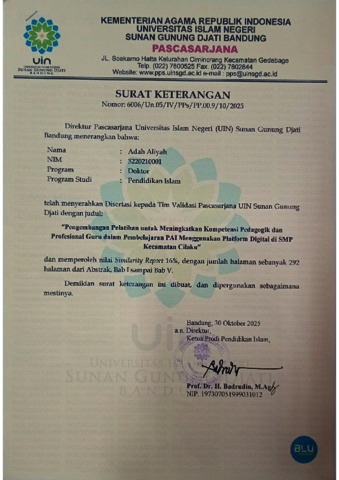 Aliyah, Adah (2025) Pengembangan pelatihan untuk meningkatkan kompetensi pedagogik dan profesional guru dalam pembelajaran Pendidikan Agama Islam menggunakan platform digital : Penelitian di SMP kecamatan Cilaku. Doktoral thesis, UIN Sunan Gunung Djati Bandung.