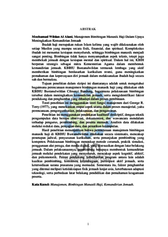 | Uncontrolled Keywords: | Manajemen; Bimbingan Manasik Haji; Kemandirian Jemaah |