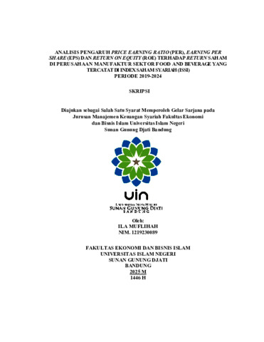 Muflihah, Ila (2025) Analisis pengaruh Price Earning Ratio (PER), Earning Per Share (EPS) dan Return on Equity (ROE) terhadap return saham di perusahaan manufaktur sektor Food and Beverage yang tercatat di Index Saham Syariah (ISSI) periode 2019-2024. Sarjana thesis, UIN Sunan Gunung Djati Bandung.