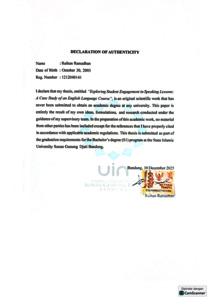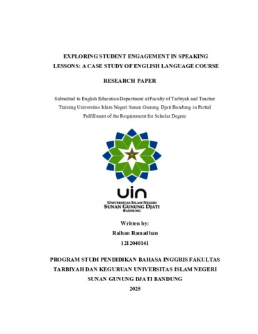 Ramadhan, Raihan (2026) Exploring student engagement in speaking lessons: A case study of english language course. Sarjana thesis, UIN Sunan Gunung Djati Bandung.