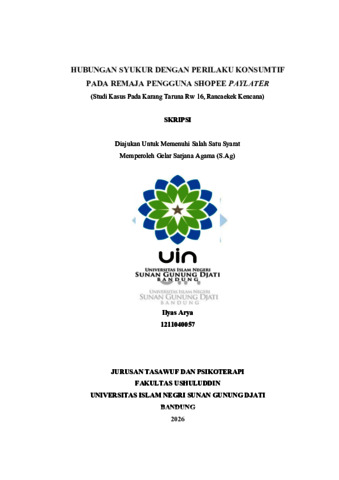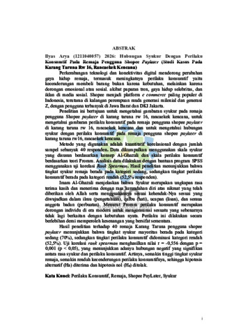 Arya, Ilyas (2026) Hubungan syukur dengan perilaku konsumtif pada remaja pengguna shopee paylater: Studi kasus pada karang taruna RW. 16 Rancaekek Kencana. Sarjana thesis, UIN Sunan Gunun Djati Bandung.