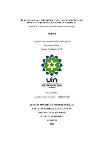 Hubungan manajemen rekrutmen peserta didik baru dengan mutu penyelenggaraan madrasah: Penelitian di Madrasah Aliyah Negeri se-kota Bandung