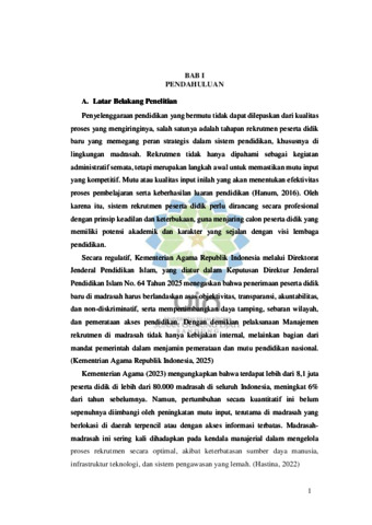 Hasanah, Azizah Uswatun (2026) Hubungan manajemen rekrutmen peserta didik baru dengan mutu penyelenggaraan madrasah: Penelitian di Madrasah Aliyah Negeri se-kota Bandung. Sarjana thesis, UIN Sunan Gunung Djati Bandung.
