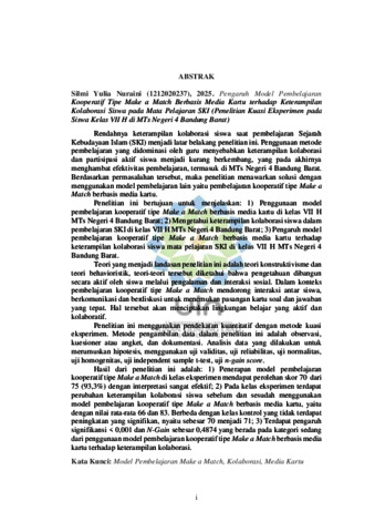 Rendahnya keterampilan kolaborasi siswa saat pembelajaran Sejarah Kebudayaan Islam (SKI) menjadi latar belakang penelitian ini. Penggunaan metode pembelajaran yang didominasi oleh guru menyebabkan keterampilan kolaborasi dan partisipasi aktif siswa menjadi kurang berkembang, yang pada akhirnya menghambat efektivitas pembelajaran, termasuk di MTs Negeri 4 Bandung Barat. Berdasarkan permasalahan tersebut, maka penelitian menawarkan solusi dengan menggunakan model pembelajaran lain yaitu pembelajaran kooperatif tipe Make a Match berbasis media kartu. Penelitian ini bertujuan untuk menjelaskan: 1) Penggunaan model pembelajaran kooperatif tipe Make a Match berbasis media kartu di kelas VII H MTs Negeri 4 Bandung Barat; 2) Mengetahui keterampilan kolaborasi siswa dalam pembelajaran SKI di kelas VII H MTs Negeri 4 Bandung Barat; 3) Pengaruh model pembelajaran kooperatif tipe Make a Match berbasis media kartu terhadap keterampilan kolaborasi siswa mata pelajaran SKI di kelas VII H MTs Negeri 4 Bandung Barat. Teori yang menjadi landasan penelitian ini adalah teori konstruktivisme dan teori behavioristik, teori-teori tersebut diketahui bahwa pengetahuan dibangun secara aktif oleh siswa melalui pengalaman dan interaksi sosial. Dalam konteks pembelajaran kooperatif tipe Make a Match mendorong interaksi antar siswa, berkomunikasi dan berdiskusi untuk menemukan pasangan kartu soal dan jawaban yang tepat. Hal tersebut akan menciptakan lingkungan belajar yang aktif dan kolaboratif. Penelitian ini menggunakan pendekatan kuantitatif dengan metode kuasi eksperimen. Metode pengambilan data dalam penelitian ini adalah observasi, kuesioner atau angket, dan dokumentasi. Analisis data yang dilakukan untuk merumuskan hipotesis, menggunakan uji validitas, uji reliabilitas, uji normalitas, uji homogenitas, uji independent sample t-test, uji n-gain score. Hasil dari penelitian ini adalah: 1) Penerapan model pembelajaran kooperatif tipe Make a Match di kelas eksperimen mendapat perolehan skor 70 dari 75 (93,3%) dengan interpretasi sangat efektif; 2) Pada kelas eksperimen terdapat perubahan keterampilan kolaborasi siswa sebelum dan sesudah menggunakan model pembelajaran kooperatif tipe Make a Match berbasis media kartu, yaitu dengan nilai rata-rata 66 dan 83. Berbeda dengan kelas kontrol yang tidak terdapat peningkatan yang signifikan, nyaitu sebesar 70 menjadi 71; 3) Terdapat pengaruh signifikansi < 0,001 dan N-Gain sebesar 0,4874 yang berada pada kategori sedang dari penggunaan model pembelajaran kooperatif tipe Make a Match berbasis media kartu terhadap keterampilan kolaborasi.