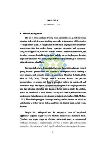 Salsabila, Intan Putri Shafira (2026) Teachers’ beliefs and students’ perceptions regarding the use of song-based approaches in teaching English for young learners. Sarjana thesis, UIN Sunan Gunung Djati Bandung.