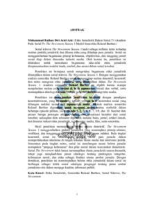 Serial televisi The Newsroom Season 1 hadir sebagai refleksi kritis terhadap realitas praktik jurnalistik dan dilema etika yang dihadapi para jurnalis. Serial ini menggambarkan bagaimana prinsip kebenaran, objektivitas, dan tanggung jawab sosial diuji dalam dinamika industri media. Oleh karena itu, penelitian ini dilakukan untuk memahami bagaimana nilai-nilai etika jurnalistik direpresentasikan melalui tanda, simbol, dan narasi dalam serial tersebut. Penelitian ini bertujuan untuk mengetahui bagaimana etika jurnalistik ditampilkan dalam serial televisi The Newsroom Season 1. Dengan menggunakan analisis semiotika Roland Barthes untuk mengungkap makna denotatif, konotatif, dan mitos mengenai etika jurnalistik yang ditampilkan dalam The Newsroom Season 1. Analisis semiotika Roland Barthes ini dipilih karena mampu menjelaskan makna yang tersirat di balik representasi visual dan verbal, serta menunjukkan ideologi dan nilai budaya yang melatarbelakangi teks media. Penelitian ini menggunakan pendekatan kualitatif dengan paradigma konstruktivisme, yang memandang realitas sebagai hasil konstruksi sosial yang dibangun melalui narasi dan representasi media. Metode analisis semiotika Roland Barthes digunakan untuk mengurai makna-makna simbolik dalam beberapa episode pilihan, yaitu episode 1, 2, 3, 4, 5, 7, 8/9, dan 10. Sumber data primer berupa potongan adegan, dialog, dan visualisasi karakter dari serial tersebut, sedangkan data sekunder diperoleh melalui buku, jurnal, artikel ilmiah, dan literatur terkait etika jurnalistik, representasi media, film, serta semiotika. Hasil penelitian menunjukkan bahwa secara denotatif, The Newsroom Season 1 menggambarkan praktik jurnalistik yang menerapkan prinsip akurasi, verifikasi, dan tanggung jawab publik dalam setiap proses redaksi. Pada tingkat konotatif, serial ini menekankan konflik moral para jurnalis dalam mempertahankan idealisme di tengah tekanan bisnis media dan intervensi politik. Sementara pada tingkat mitos, serial ini membangun narasi bahwa jurnalis merupakan “penjaga kebenaran” dan pilar moral dalam masyarakat demokratis. Serial The Newsroom tidak hanya menampilkan dunia jurnalistik secara dramatik, tetapi juga menghadirkan pesan ideologis tentang pentingnya integritas, keberanian moral, dan etika sebagai fondasi utama profesi jurnalis. Dengan demikian, penelitian ini menyimpulkan bahwa etika jurnalistik dalam serial ini berfungsi sebagai kritik sosial sekaligus pengingat tentang peran sentral jurnalisme etis dalam menjaga kualitas informasi publik.