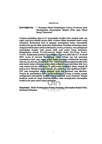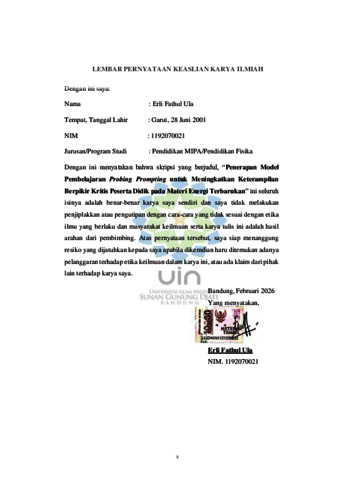 | Uncontrolled Keywords: | Model Pembelajaran Probing Prompting; Keterampilan Berpikir Kritis; Energi Terbarukan |