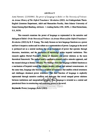 Nawawi, Azmi (2026) The power of language in Babel: or the necessity of violence: an arcane history of the oxford translators’ revolution (2022) by R. F. Kuang. Sarjana thesis, UIN Sunan Gunung Djati Bandung.