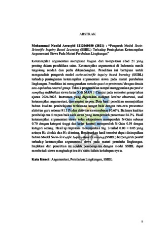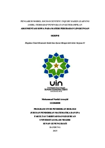 Arrasyid, Muhammad Naufal (2025) Pengaruh model Socio-Scientific Inquiry Based learning (SSIBL) terhadap peningkatan keterampilan argumentasi siswa pada materi perubahan lingkungan. Sarjana thesis, UIN Sunan Gunung Djati Bandung.