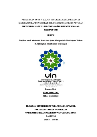 apriatna, Deni Apriatna (2026) Proses penegakan hukum dalam sengketa hasil pilkada di Kabupaten Bandung Barat berdasarkan analisis putusan MK nomor 192/PHPU.BUP-XXIII/2025 perspektif siyasah qadhaiyyah. Sarjana thesis, UIN Sunan Gunung Djati Bandung.
