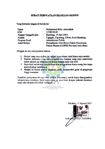 Aminulloh, Muhammad Rifqi (2026) Pemanfaatan data reses dalam perumusan pokok pikiran di DPRD Provinsi Jawa Barat. Sarjana thesis, UIN Sunan Gunung Djati Bandung.