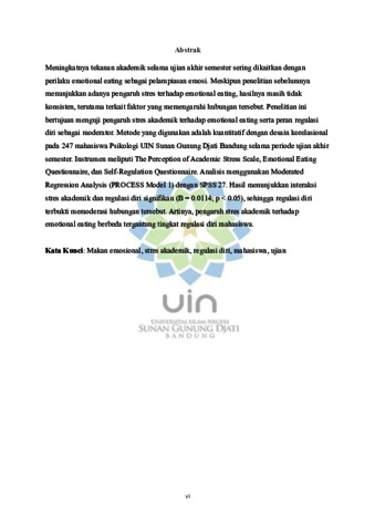 Nabilah, Najla Fauziyyah Alma (2026) Pengaruh stres akademik terhadap emotional eating mahasiswa Fakultas Psikologi UIN Sunan Gunung Djati Bandung dengan regulasi diri sebagai variabel moderator. Sarjana thesis, UIN Sunan Gunung Djati Bandung.