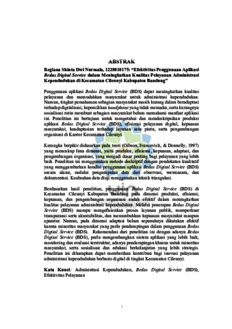 Efektivitas penggunaan aplikasi bedas digital service dalam meningkatkan kualitas pelayanan administrasi kependudukan di kecamatan Cileunyi kabupaten Bandung