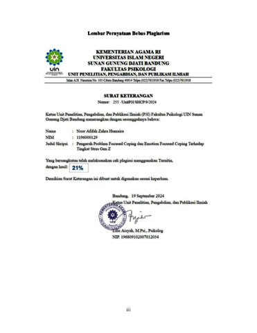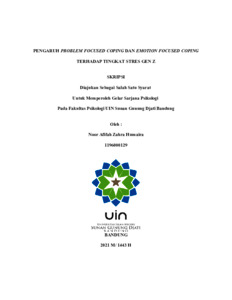 Humaira, Noor Afifah Zahra (2024) Pengaruh Problem Focused Coping dan Emotion Focused Coping terhadap tingkat stres gen Z. Sarjana thesis, UIN Sunan Gunung Djati Bandung.