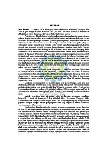 | Uncontrolled Keywords: | Kebiasaan menonton tayangan; Film; Upin dan Ipin ; Kualitas Karakter ; Anak Usia Dini |