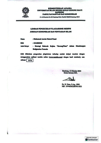 Fauzi, Muhamad Aswin Fahrul (2025) Strategi dakwah kajian “SarungTime” dalam membangun religiusitas pemuda: Penelitian pada yayasan pemuda hijrah di Masjid Pemuda Raheela Cilengkrang. Sarjana thesis, UIN Sunan Gunung Djati Bandung.