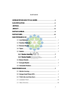 | Uncontrolled Keywords: | Kemacetan; Kepadatan Lalu Lintas; Deteksi Kendaraan; Machine learning; YOLOv5 |