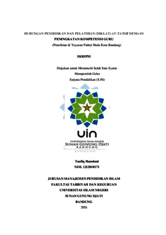Hamdani, Taufiq (2026) Hubungan pendidikan dan pelatihan (DIKLAT) At-Ta’dib dengan peningkatan kompetensi guru : Penelitian di yayasan Fathul Huda kota Bandung. Sarjana thesis, UIN Sunan Gunung Djati Bandung.